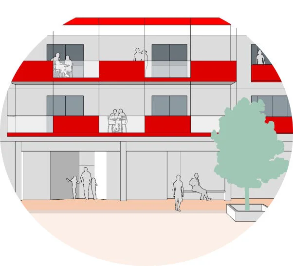 The introduction of retrofitted balconies, with views onto the high street, create activity outside the 9-5pm working day. Additionally, overlooking balconies give ‘eyes on the street’ creating passive security and improving the safety of public spaces. The provision of private external space makes the residences more attractive, bringing the outside into a dwelling and providing the opportunity for creating a small garden or dining space.